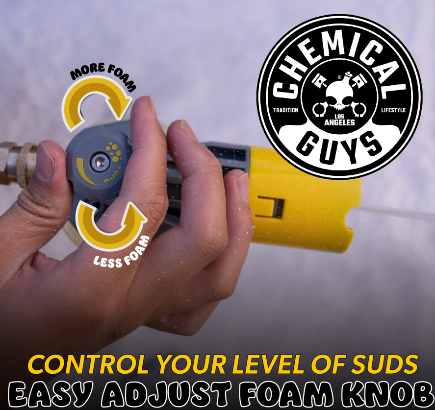 Upgrade your cleaning routine with the TORQ Big Mouth Max Release Foam Cannon. Its fully adjustable foam stream produces thick. fluffy suds that reduce the chances of swirls and scratches and coats your exterior with soap for an effective deep clean.