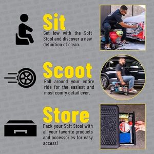 This kit is the ultimate in cleaning and detailing your vehicle while holding the pinnacle of comfort with the included soft stool. Shower your car with foam. wipe down those panels inside and out. and make those wheels gleam??the ideal vehicle care armory for any garage.