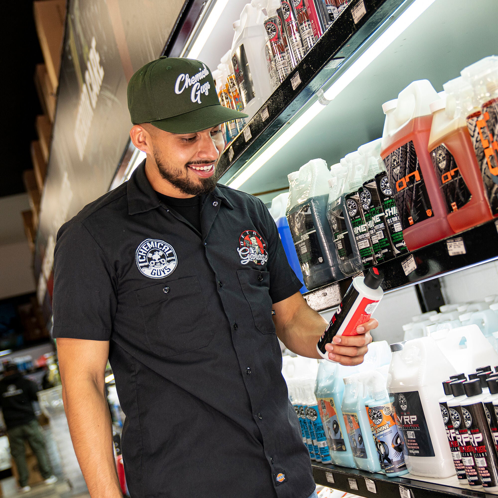 Upgrade your look with the fresh. new Snap-It-Back Olive Green Script Hat! Wear it frontwards or backwards to keep cool while detailing. and let the raised script lettering broadcast far & wide: you’re with Chemical Guys.