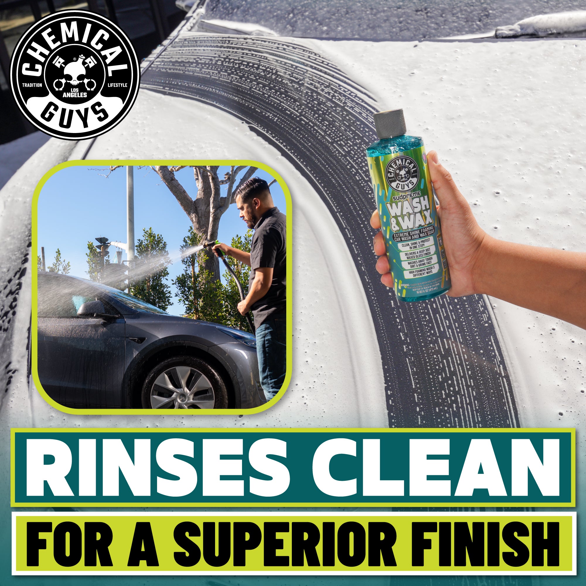 Infused with natural carnauba wax. Sudpreme delivers a deep. just-waxed shine while creating a protective barrier against environmental elements. The high-foaming formula gently lifts and removes dirt and grime. leaving behind a high-shine layer of carnauba wax protection. Safe for use on all surfaces. including paint. chrome. and plastics.